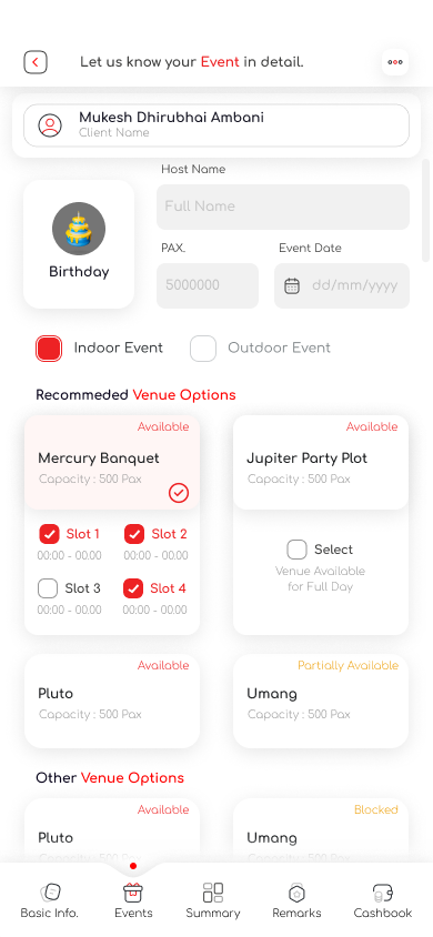 Effortlessly book all the event requirements of your guests within the app and let the accounts be automatically prepared for you. With just a click, you can instantly share the accounts with your clients whenever necessary.